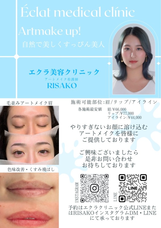 Risakoのご予約は、エクラの公式LINE https://lin.ee/Gc57eWq にて承っております。
