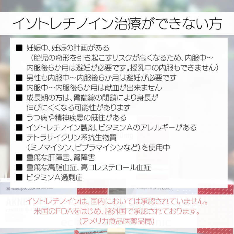 またイソトレチノインの副作用やリスクお薬の入手経路等は施術メニューの内服薬リストからご確認ください。