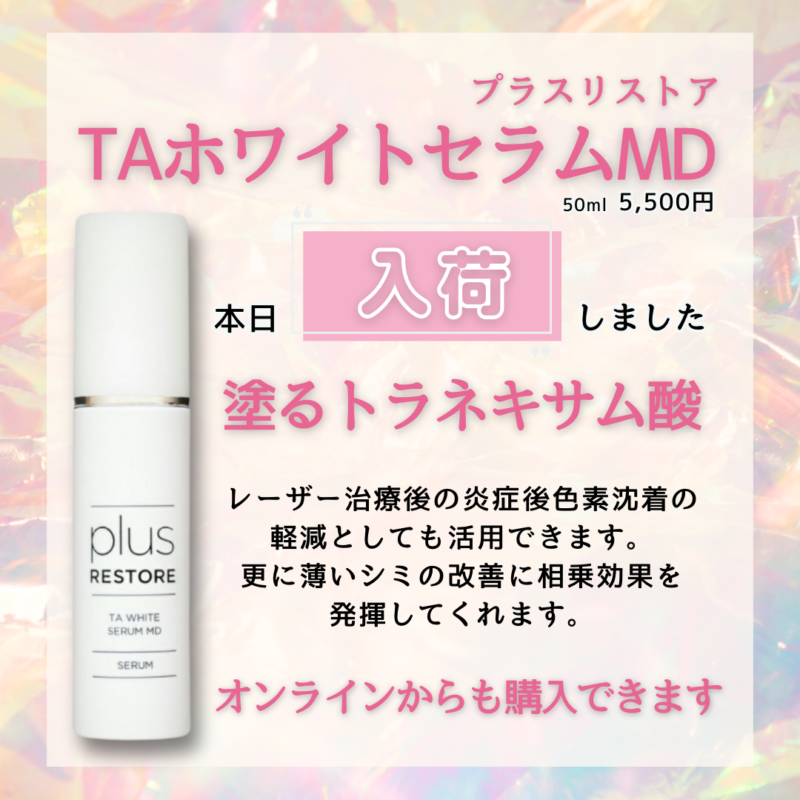 発売直後から人気商品のためメーカー欠品が続いておりました塗るトラネキサム酸 «TAホワイトセラムMD»本日、入荷いたしました。