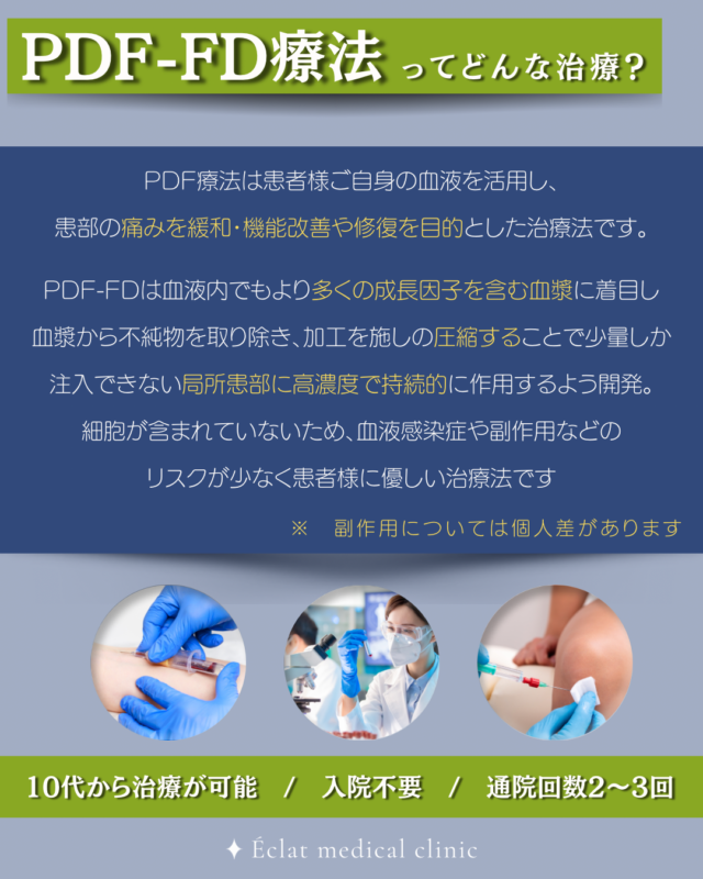 が対象となる治療法です。PDF-FDとは、血小板の働きを活用するPRP療法を応用した治療法で