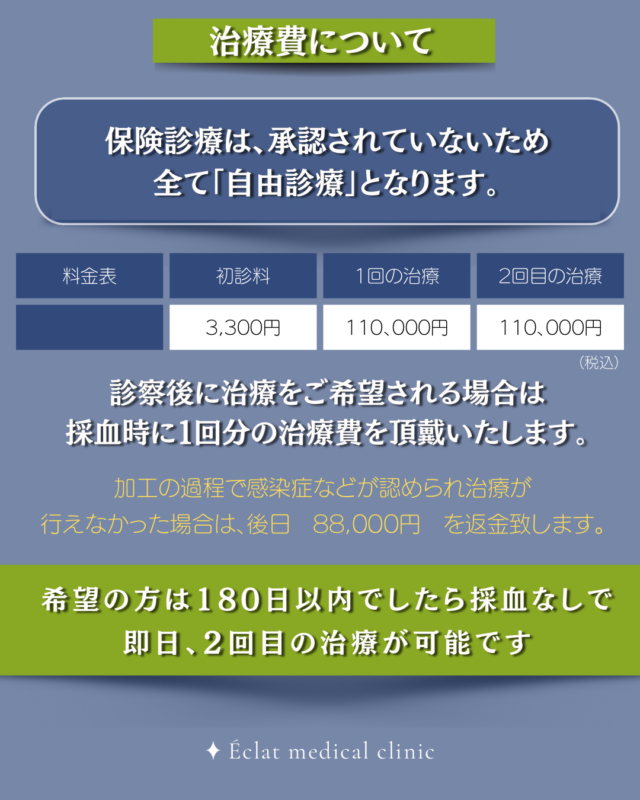 フリーズドライすることで保存期間が半年となり2回目の治療を希望される場合、即日可能となりました。